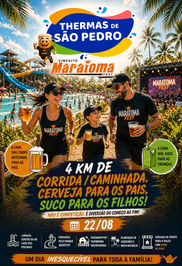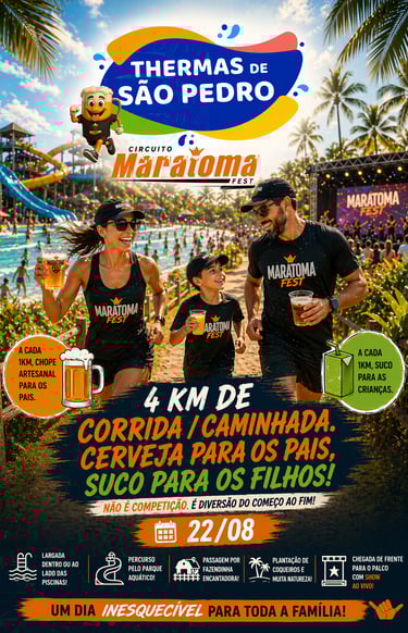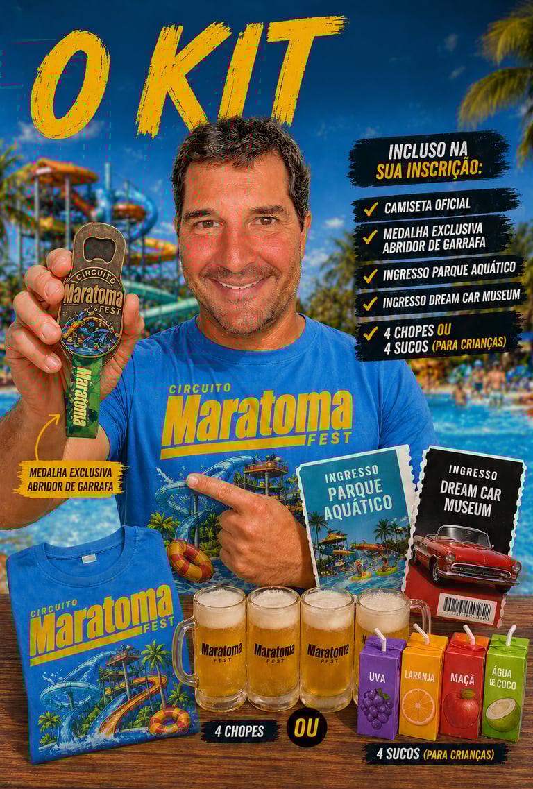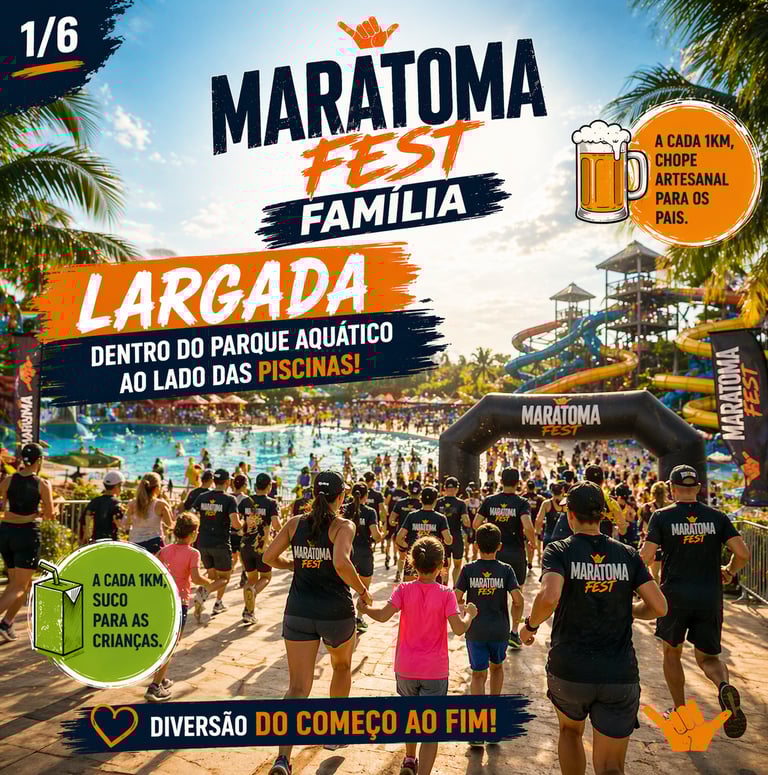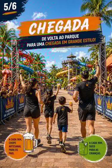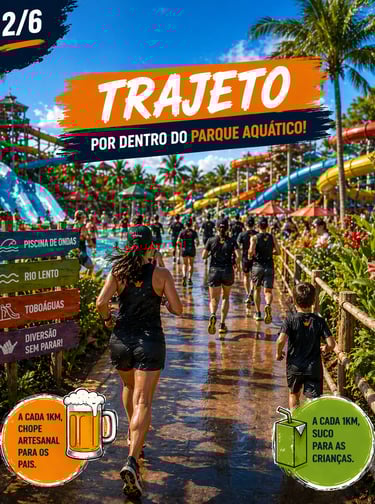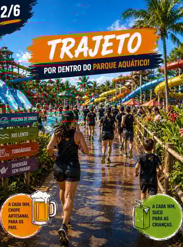Largada parte do trajeto e chegada dentro do parque aquático ao lado das piscinas e show ao vivo ao final!