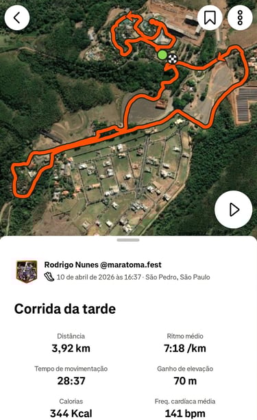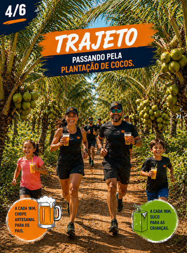 Trajeto da corrida de 4 km com hidratação de chopp para adultos e suco para as crianças.
